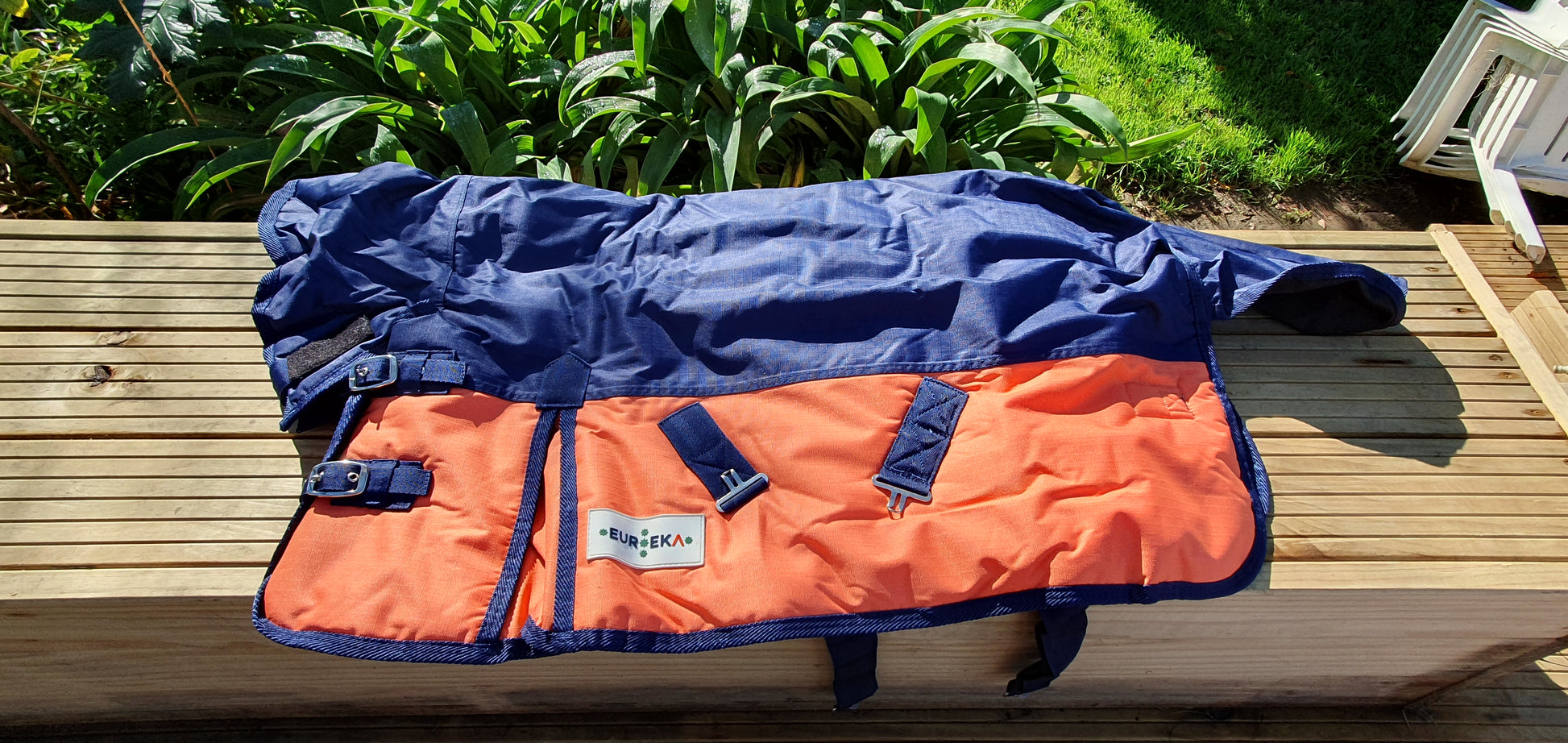 FEATURES: 600 Denier breathable waterproof ripstop material with 200gsm polyfill. Lined tail flap, rump darts and shoulder gussets. All polyester cotton lined and with x-over surcingles and removable leg straps.